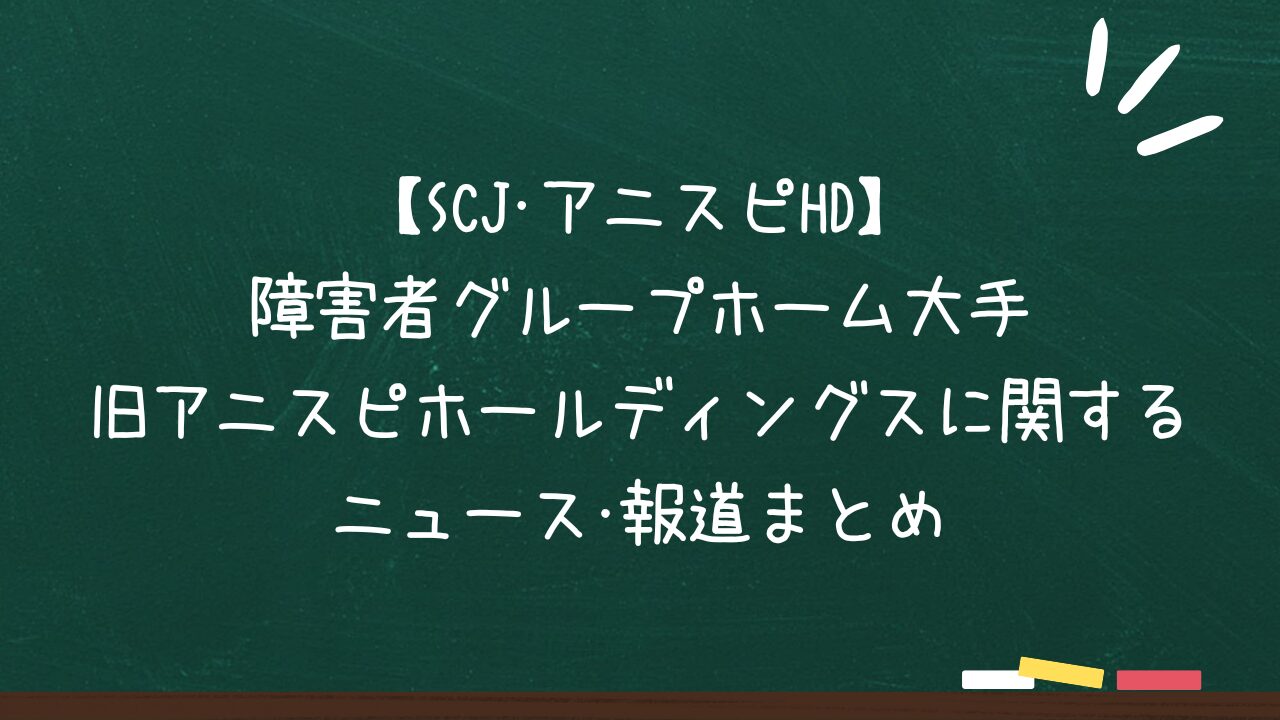【騙された?】障害者GH大手 旧アニスピホールディングスに関するニュース・報道まとめ 裁判・捏造・過大請求・... 【随時更新!】アニスピの評判やSCJとの関係などに関心がある方必見! この記事では、旧アニスピホールディングスとSCJやアニスピHDとの関係をわかりやす解説するとともに...